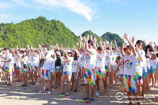 Điểm quan trọng nhất khi diện một mẫu áo đồng phục Teambuilding chính là sự nổi bật. Màu trắng, có thể tạo hiệu ứng sáng khi chụp ảnh. Kết hợp với tone màu nổi bật khi in lên áo đồng phục sẽ giúp tập thể bạn nổi bật giữa bãi biển.